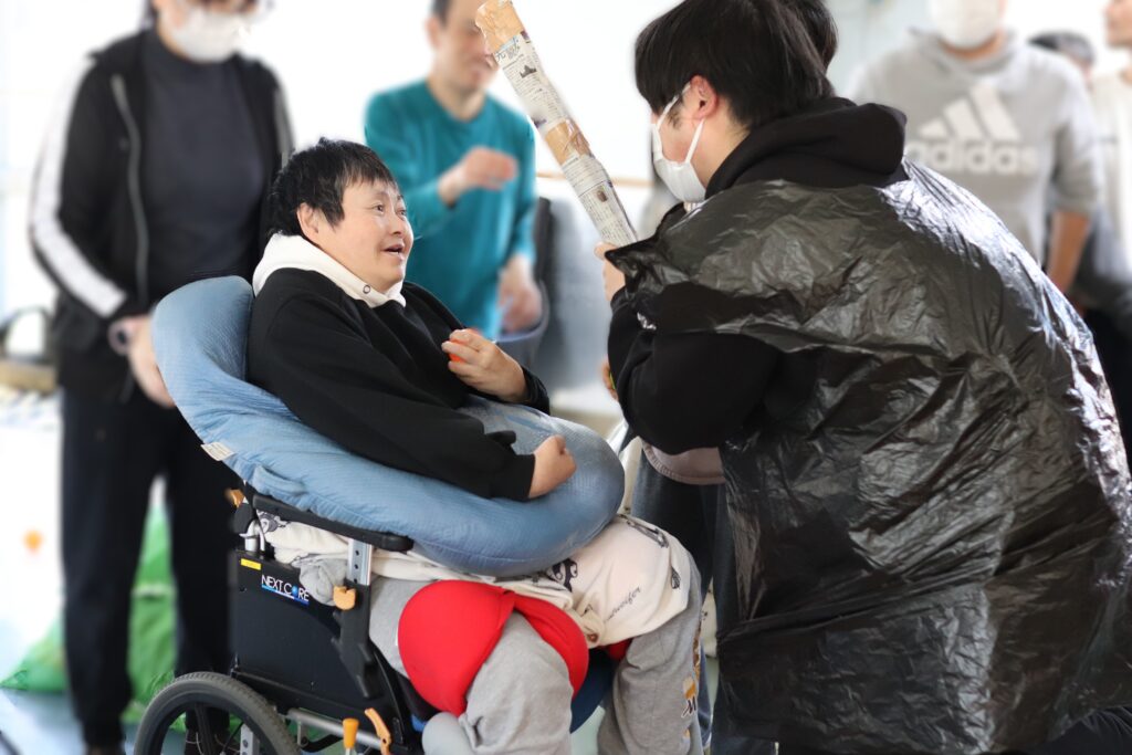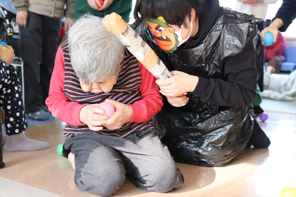 鬼が近づくと利用者様は「いやだー!」とボールを鬼に投げ退治✨