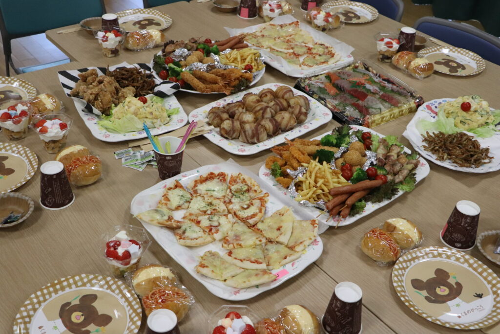 この日は、卒園生たちがリクエストした大好きなメニュー✨みんなでテーブルを囲み、賑やかに食事を楽しみました😊