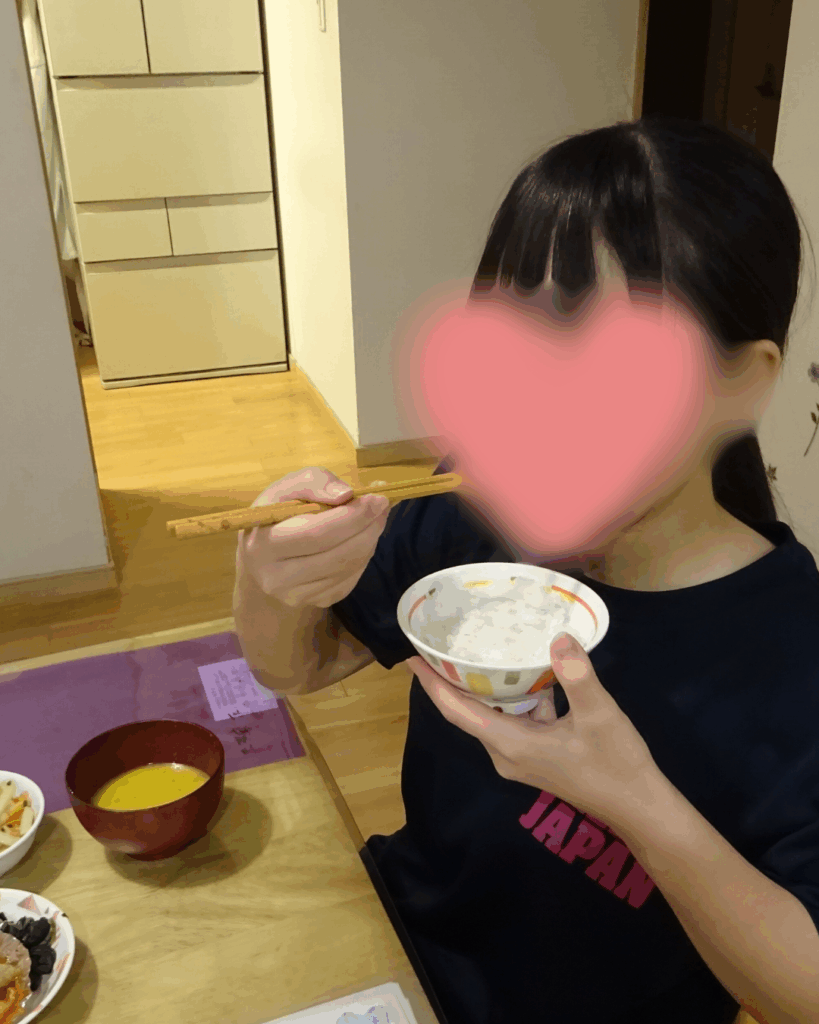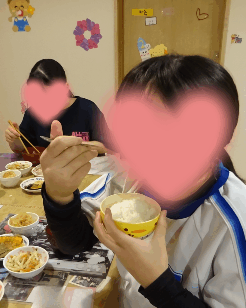 山家学園には食べ盛りな中高生が多くいるため、食事前は「お腹すいた~」と腹ペコな子ども達です😆