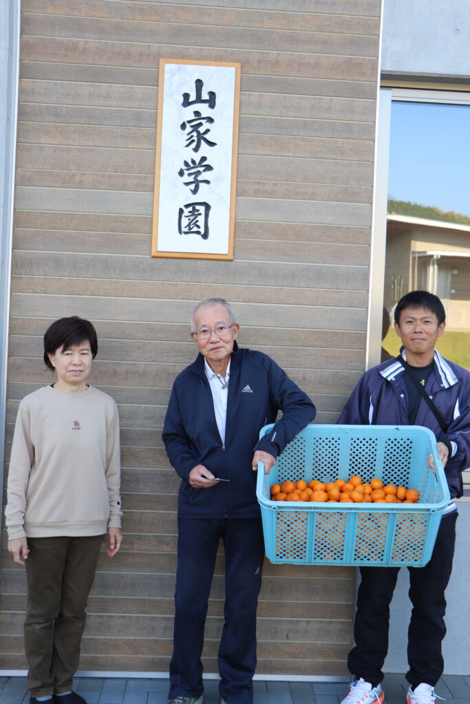 今回いただいたみかんは「皮に傷があり商品としては出せないが味はとっても美味しいです。山家学園のみなさんで食べてください」とご寄付していただきました😊