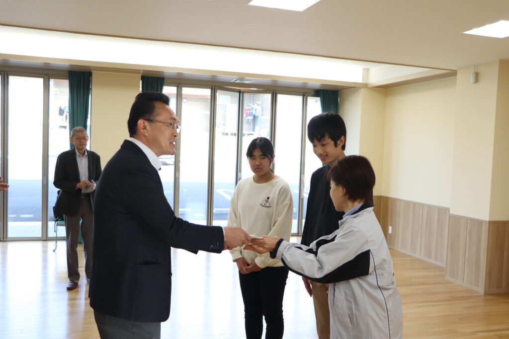 ゆふいん道の駅大久保慶様より、「山家学園の子ども達の進路を決める時に活用してください」とご寄付をいただきました。ゆふいん道の駅様は、これまでも慈善活動を積極的に行ってこられたそうです。今回は子ども達が進路を決める際、金銭面で悩むことがあるという話を聞いて山家学園に寄付をしたいと思われたそうです。