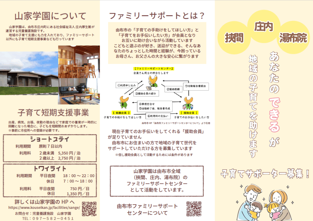 児童養護施設 山家学園では、由布市から委託を受け【ファミリーサポートセンター】の受付窓口を行っています。