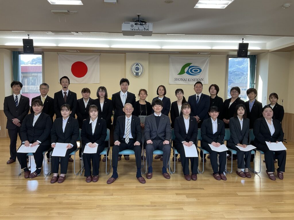 辞令交付式では、4月1日付で採用となった7名の正規職員と7名の昇進した職員へ伊藤大海理事長より辞令が手渡されました。