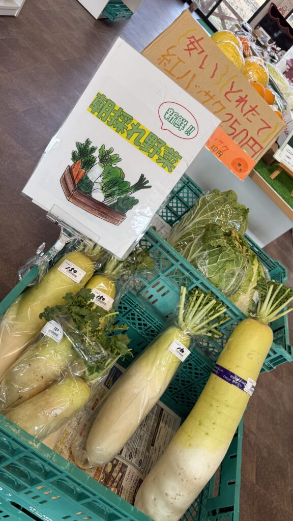 また地産地消コーナーでは新鮮な「朝採れ野菜」も販売しております。