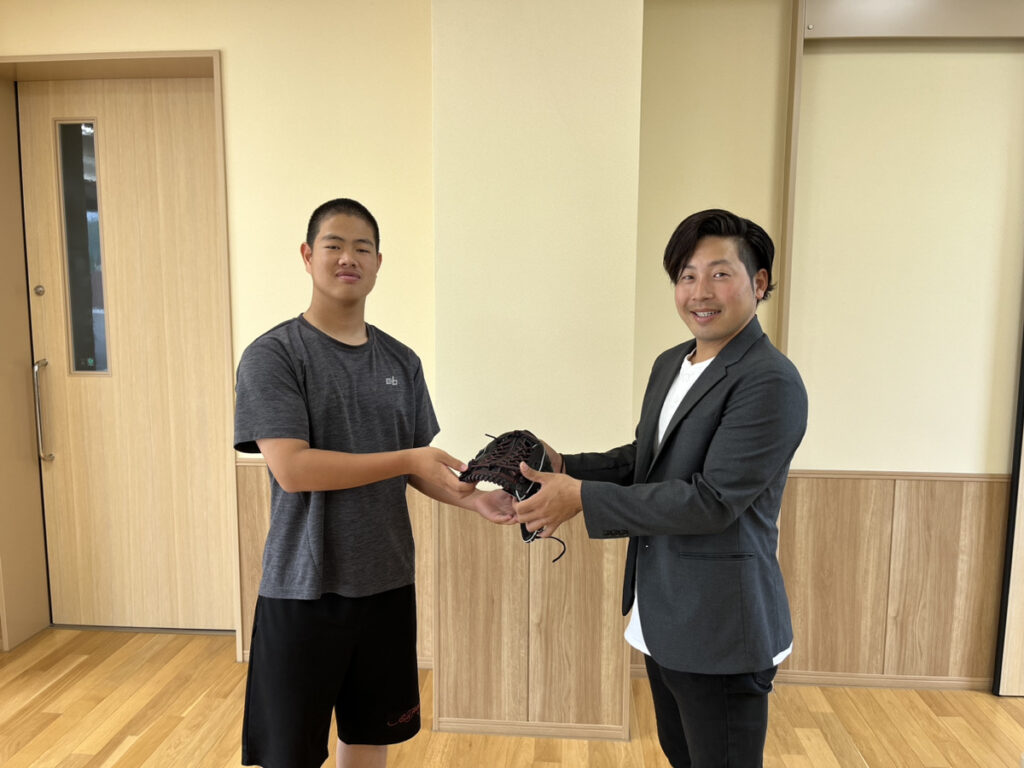 頂いてすぐにグローブをはめ、エアーボールを投げていました😊