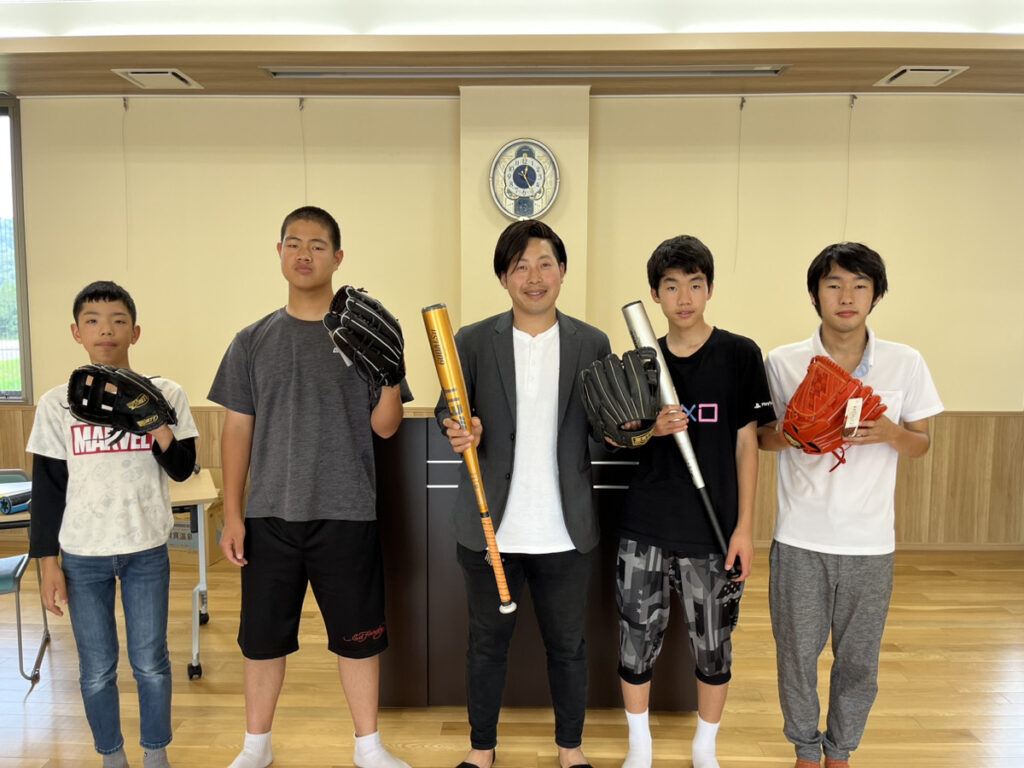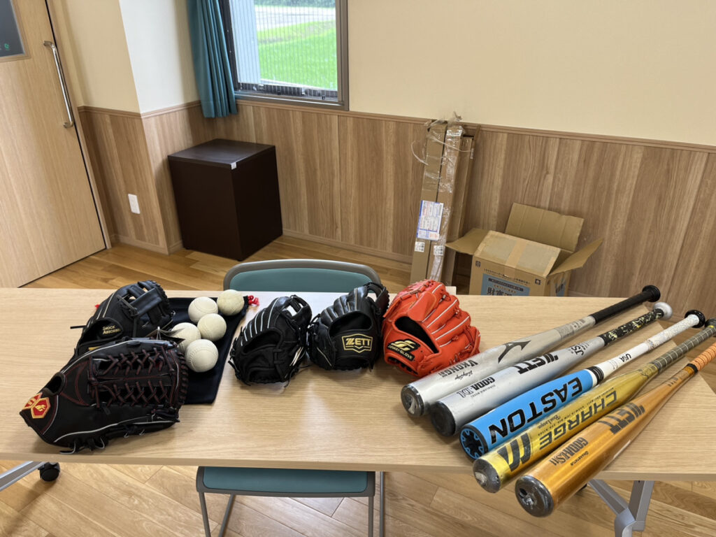 今回ご寄付をいただいた野球用品は、日本未来スポーツ振興協会様からのご寄付と、