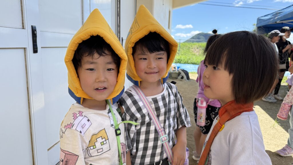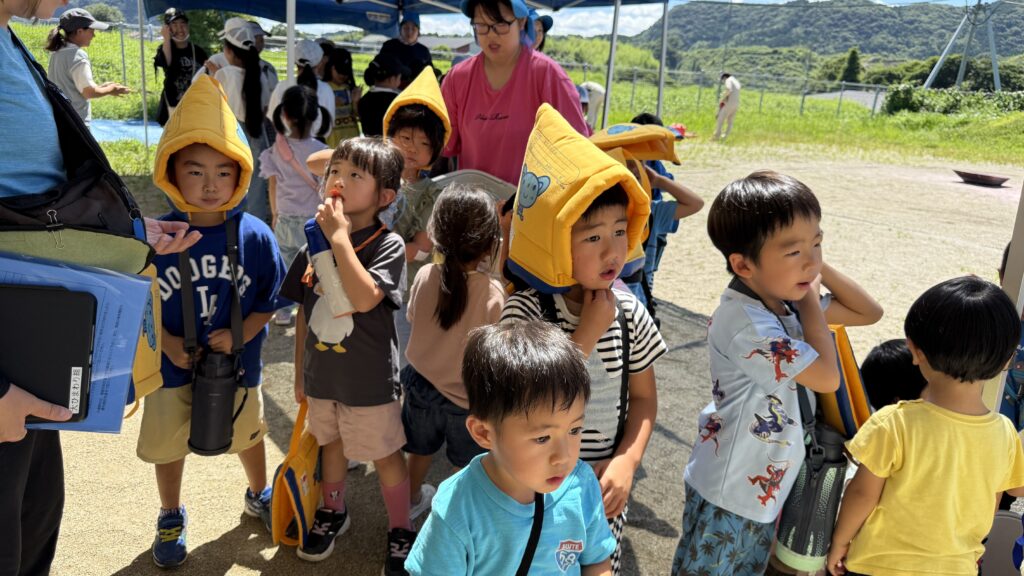 火災発生後、避難が始まると子ども達は先生の話をよく聞いて静かにグラウンドへ避難!