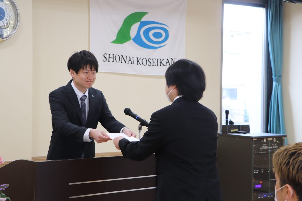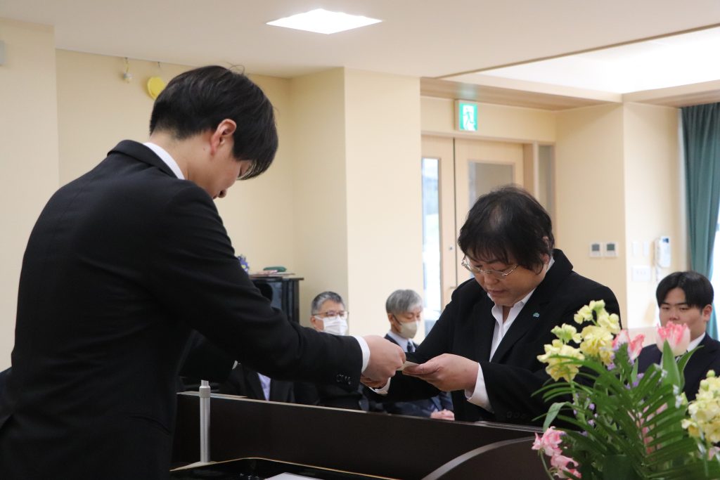 辞令交付式では、4月1日付で採用となった6名の正規職員と4名の昇進した職員へ伊藤秀海理事長より辞令が手渡されました。